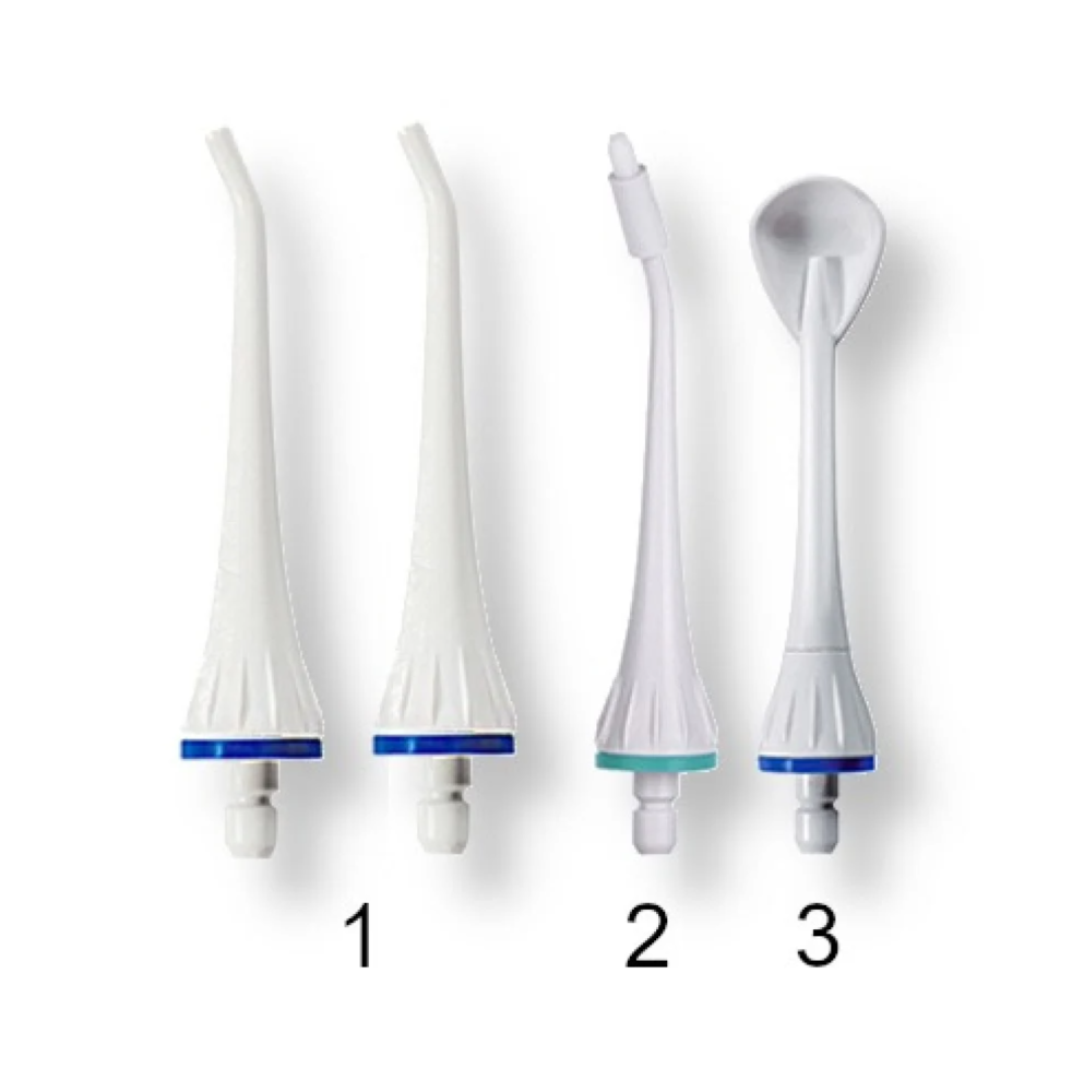 تقنية الخيط المائي: يطلق تيارًا مائيًا دقيقًا بقطر 0.6 مم ليصل إلى أضيق المساحات بين الأسنان، حيث لا تصل الفرشاة التقليدية.