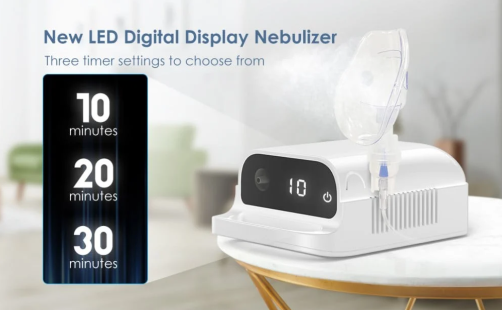 • شاشة رقمية ذكية مزودة بمؤقت (10 – 20 – 30 دقيقة) للتحكم الدقيق بجلسات الاستنشاق.